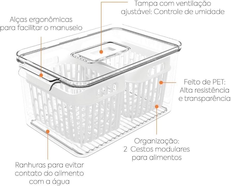 Organizador de geladeira 3l com 2 cestas